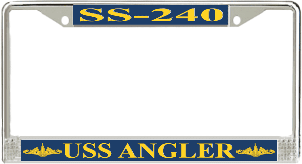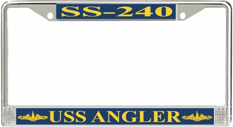 USS Angler SS-240 License Plate Frame This USS Angler SS-240 License Plate Frame is proudly made in the USA at our facilities in Scottsboro, Alabama. Each Frame features top and bottom sublimated design strips that are poly coated for a protective gloss finish. Please check your state and local regulations for compatibility of these frames for use on your vehicle.