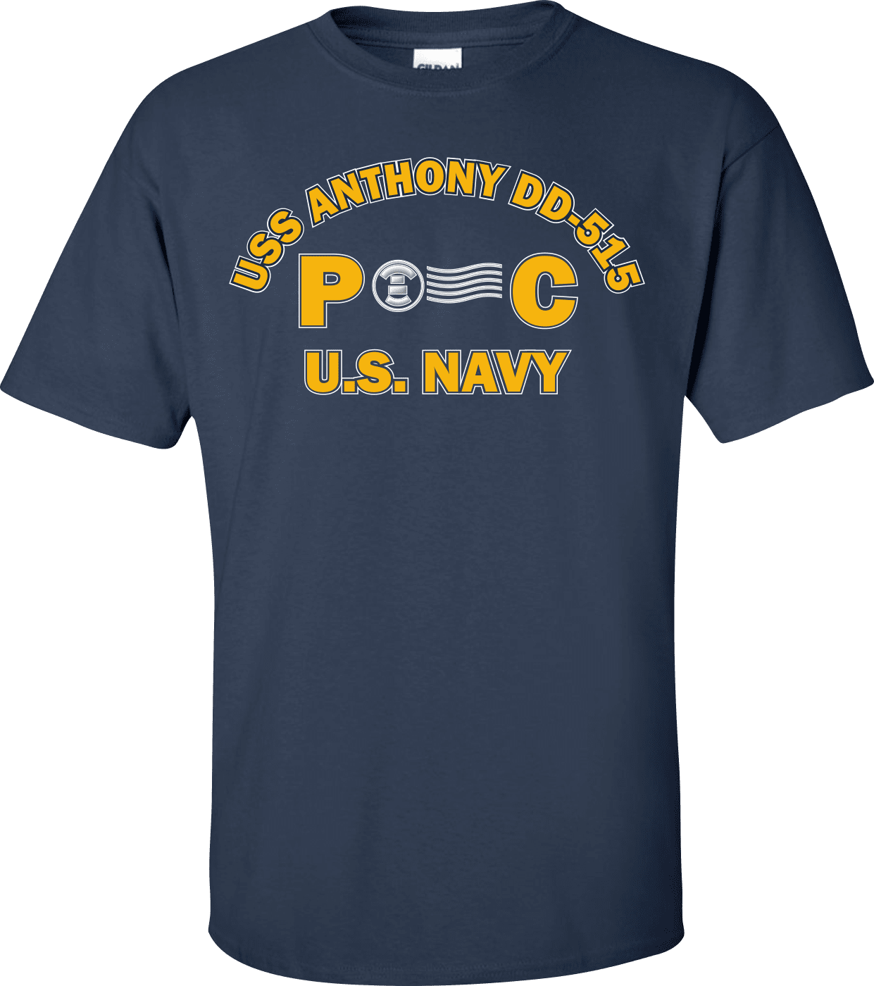 MilitaryBest is proud to offer this USS ANTHONY DD-515 Rate PC Postal Clerk T-Shirt. This shirt is available as a 100% cotton t-shirt or a 100% polyester men’s or women’s moisture wicking t-shirt. Each shirt is proudly printed in the USA.