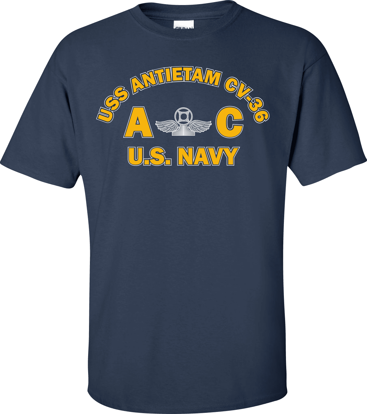 MilitaryBest is proud to offer this USS ANTIETAM CV-36 Rate AC Air Traffic Controller T-Shirt. This shirt is available as a 100% cotton t-shirt or a 100% polyester men’s or women’s moisture wicking t-shirt. Each shirt is proudly printed in the USA.