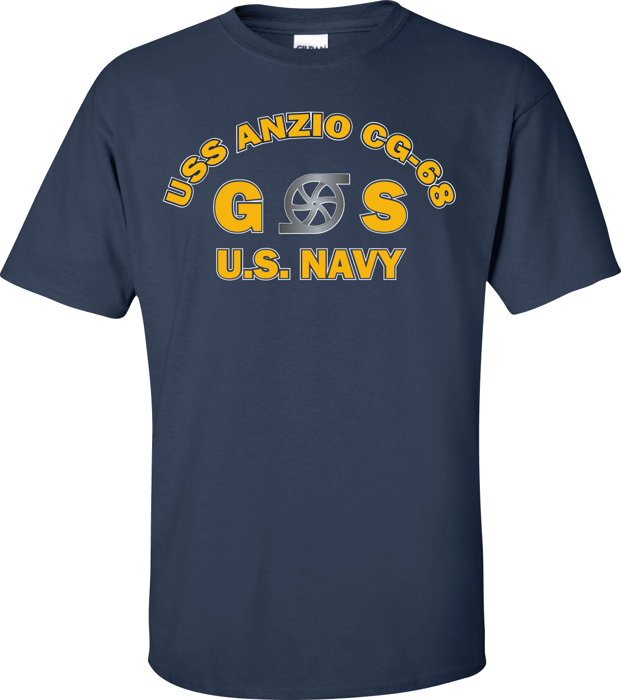 MilitaryBest is proud to offer this USS ANZIO CG-68 Rate GS Gas Turbine System Technician T-Shirt. This shirt is available as a 100% cotton t-shirt or a 100% polyester men’s or women’s moisture wicking t-shirt. Each shirt is proudly printed in the USA.