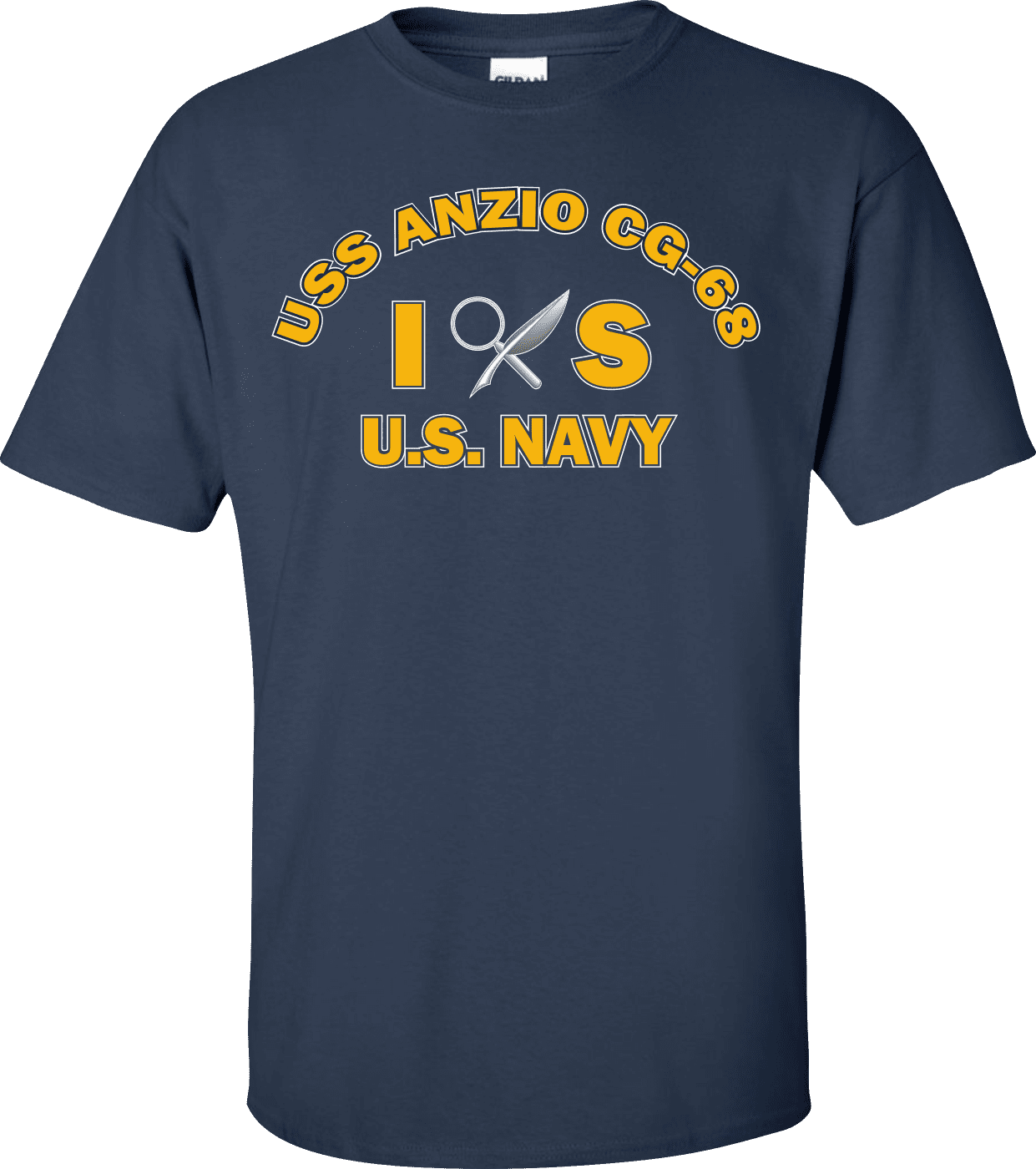 MilitaryBest is proud to offer this USS ANZIO CG-68 Rate IS Intelligence Specialist T-Shirt. This shirt is available as a 100% cotton t-shirt or a 100% polyester men’s or women’s moisture wicking t-shirt. Each shirt is proudly printed in the USA.