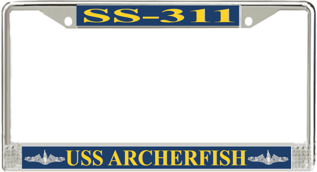 USS Archerfish SS-311 License Plate Frame This USS Archerfish SS-311 License Plate Frame is proudly made in the USA at our facilities in Scottsboro, Alabama. Each Frame features top and bottom sublimated design strips that are poly coated for a protective gloss finish. Please check your state and local regulations for compatibility of these frames for use on your vehicle.