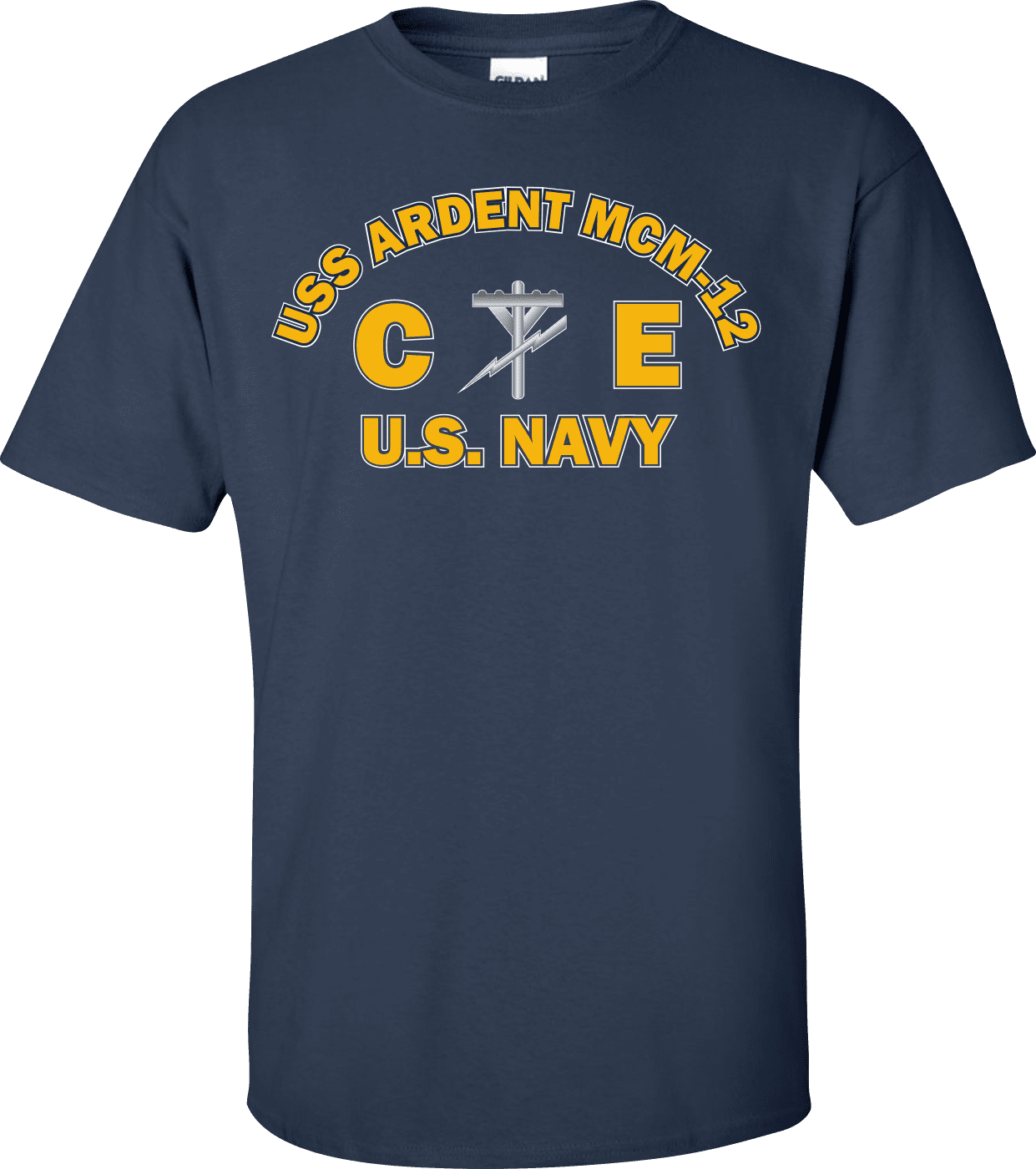 MilitaryBest is proud to offer this USS ARDENT MCM-12 Rate CE Construction Electrician T-Shirt. This shirt is available as a 100% cotton t-shirt or a 100% polyester men’s or women’s moisture wicking t-shirt. Each shirt is proudly printed in the USA.