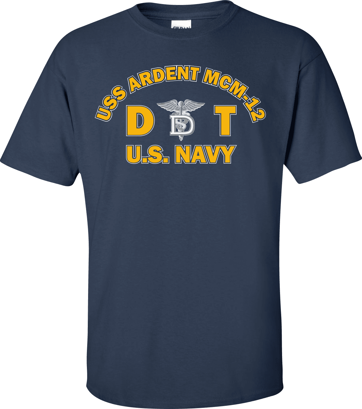MilitaryBest is proud to offer this USS ARDENT MCM-12 Rate DT Dental Technician T-Shirt. This shirt is available as a 100% cotton t-shirt or a 100% polyester men’s or women’s moisture wicking t-shirt. Each shirt is proudly printed in the USA.
