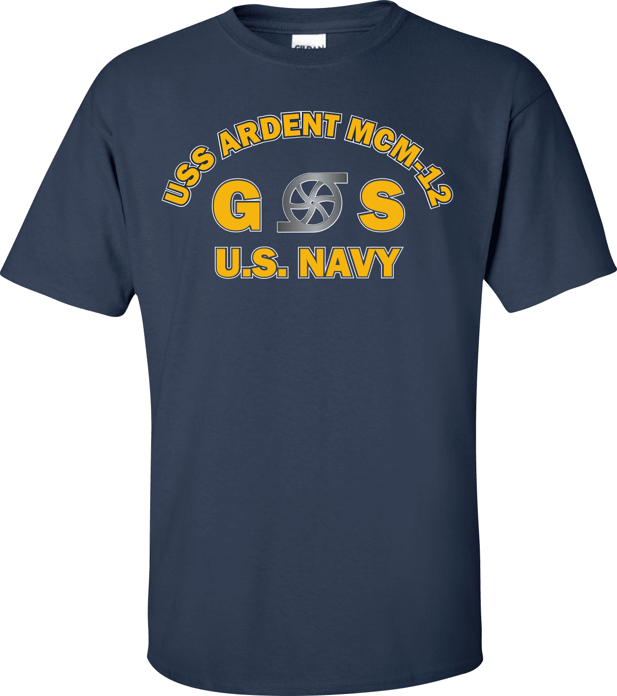 MilitaryBest is proud to offer this USS ARDENT MCM-12 Rate GS Gas Turbine System Technician T-Shirt. This shirt is available as a 100% cotton t-shirt or a 100% polyester men’s or women’s moisture wicking t-shirt. Each shirt is proudly printed in the USA.