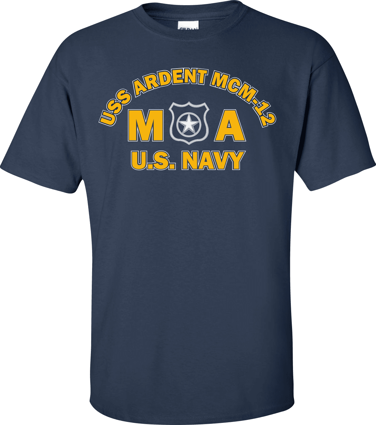 MilitaryBest is proud to offer this USS ARDENT MCM-12 Rate MA Master At Arms T-Shirt. This shirt is available as a 100% cotton t-shirt or a 100% polyester men’s or women’s moisture wicking t-shirt. Each shirt is proudly printed in the USA.