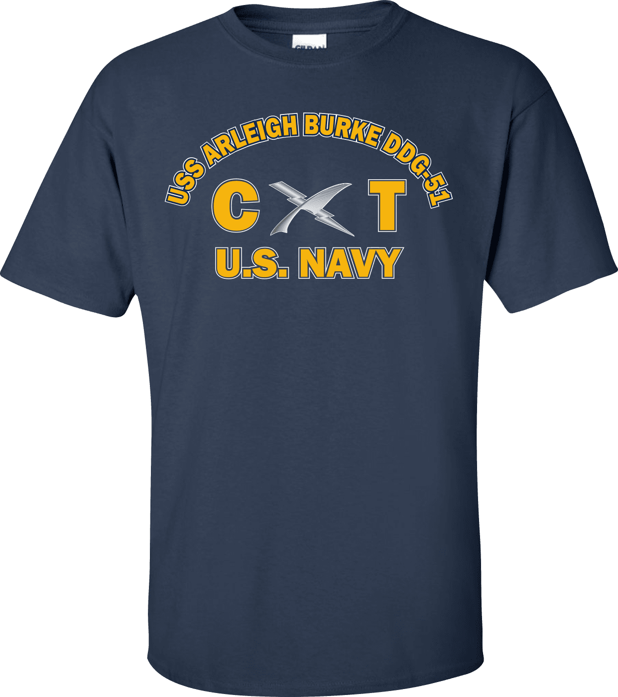MilitaryBest is proud to offer this USS ARLEIGH BURKE DDG-51 Rate CT Cryptologic Technician T-Shirt. This shirt is available as a 100% cotton t-shirt or a 100% polyester men’s or women’s moisture wicking t-shirt. Each shirt is proudly printed in the USA.