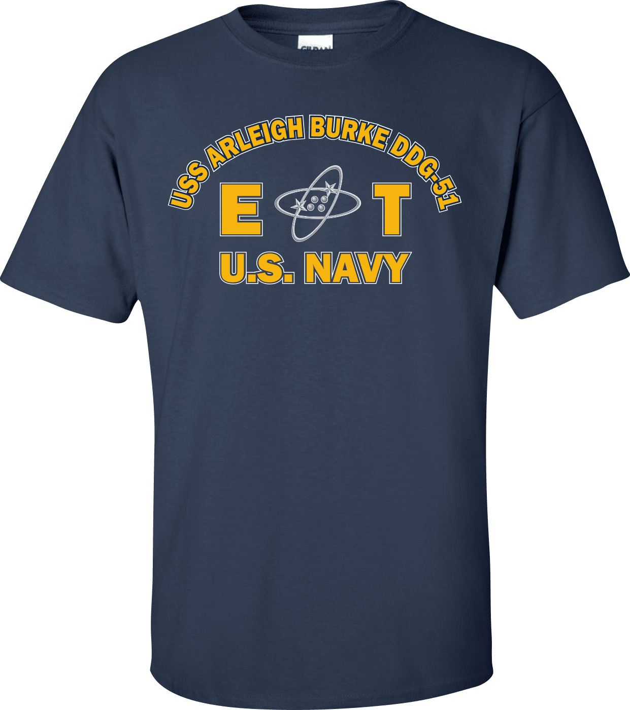 MilitaryBest is proud to offer this USS ARLEIGH BURKE DDG-51 Rate ET Electronics Technician T-Shirt. This shirt is available as a 100% cotton t-shirt or a 100% polyester men’s or women’s moisture wicking t-shirt. Each shirt is proudly printed in the USA.