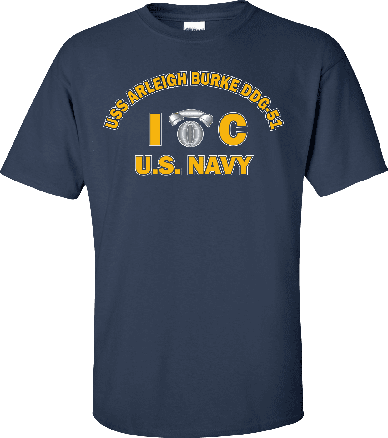 MilitaryBest is proud to offer this USS ARLEIGH BURKE DDG-51 Rate IC Interior Communications Electrician T-Shirt. This shirt is available as a 100% cotton t-shirt or a 100% polyester men’s or women’s moisture wicking t-shirt. Each shirt is proudly printed in the USA.