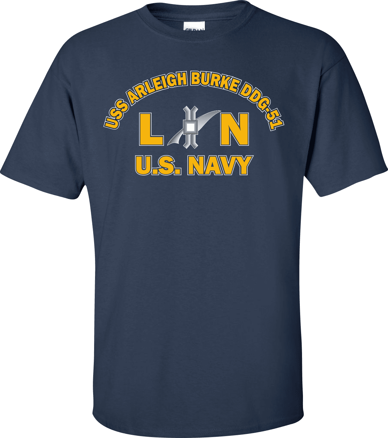 MilitaryBest is proud to offer this USS ARLEIGH BURKE DDG-51 Rate LN Legalman T-Shirt. This shirt is available as a 100% cotton t-shirt or a 100% polyester men’s or women’s moisture wicking t-shirt. Each shirt is proudly printed in the USA.