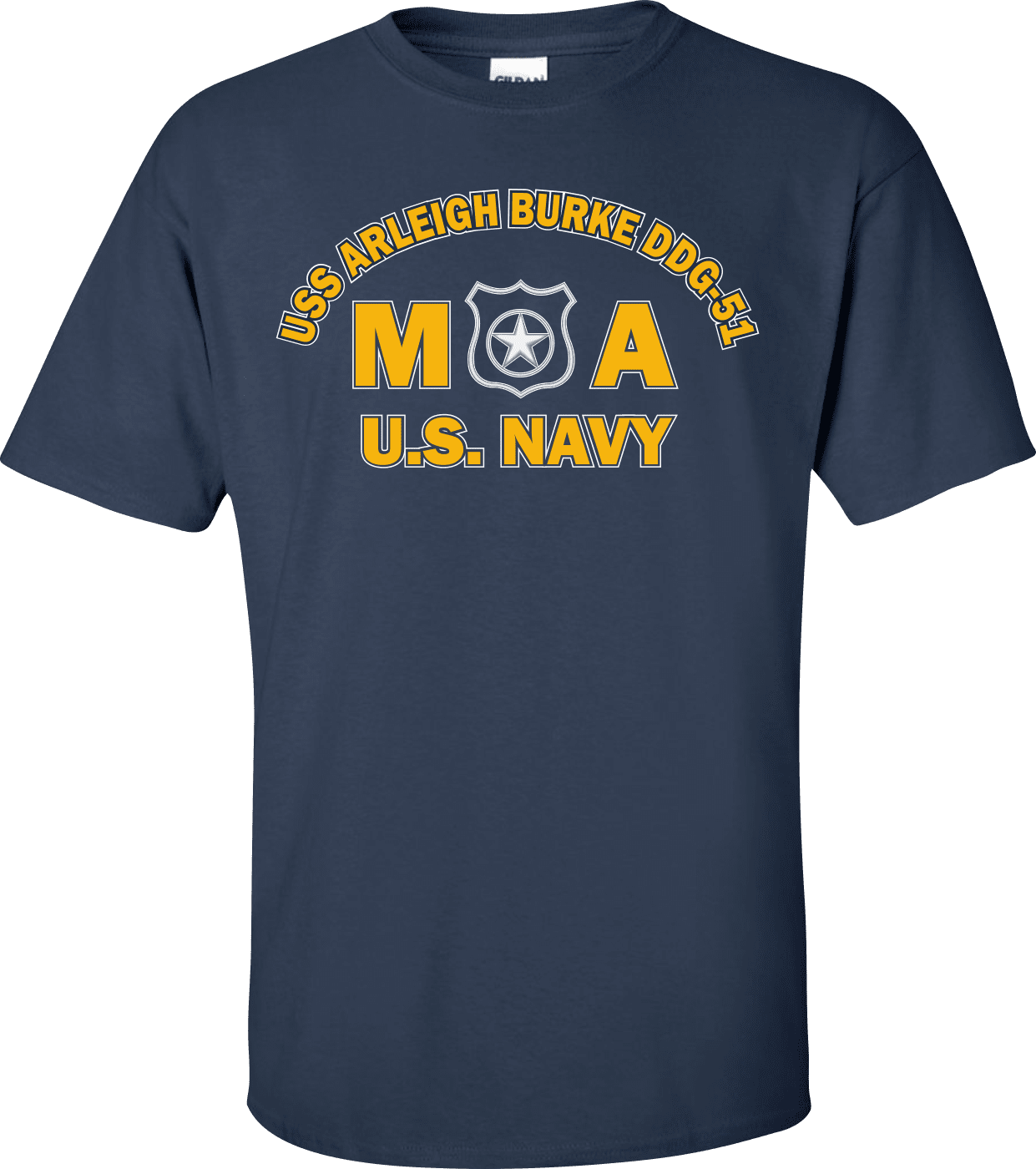 MilitaryBest is proud to offer this USS ARLEIGH BURKE DDG-51 Rate MA Master At Arms T-Shirt. This shirt is available as a 100% cotton t-shirt or a 100% polyester men’s or women’s moisture wicking t-shirt. Each shirt is proudly printed in the USA.