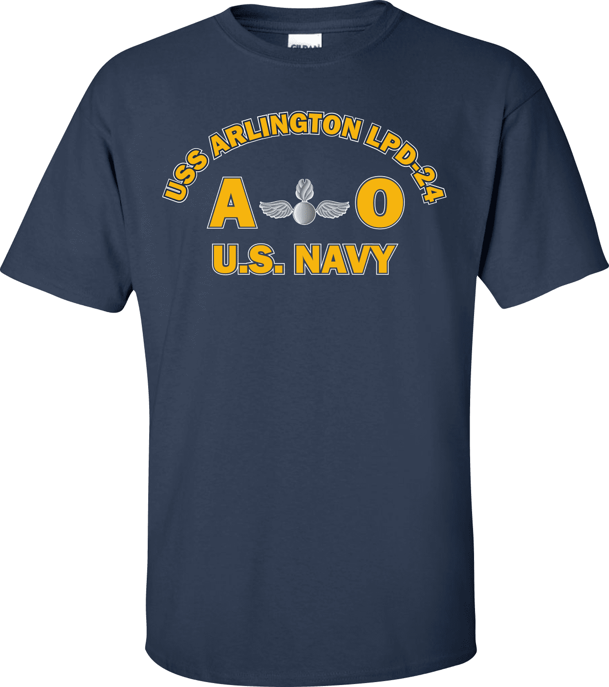 MilitaryBest is proud to offer this USS ARLINGTON LPD-24 Rate AO Aviation Ordnanceman T-Shirt. This shirt is available as a 100% cotton t-shirt or a 100% polyester men’s or women’s moisture wicking t-shirt. Each shirt is proudly printed in the USA.