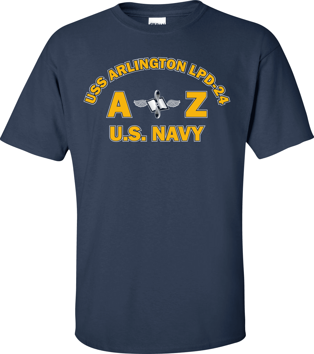 MilitaryBest is proud to offer this USS ARLINGTON LPD-24 Rate AZ Aviation Maintenance Administrationman T-Shirt. This shirt is available as a 100% cotton t-shirt or a 100% polyester men’s or women’s moisture wicking t-shirt. Each shirt is proudly printed in the USA.