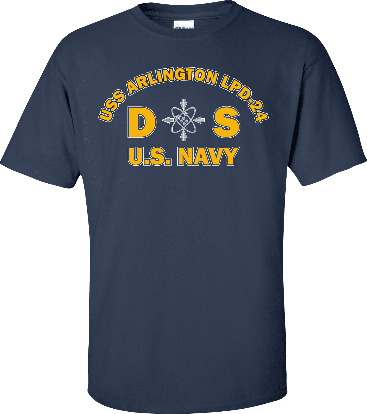 MilitaryBest is proud to offer this USS ARLINGTON LPD-24 Rate DS Data Systems Technician T-Shirt. This shirt is available as a 100% cotton t-shirt or a 100% polyester men’s or women’s moisture wicking t-shirt. Each shirt is proudly printed in the USA.