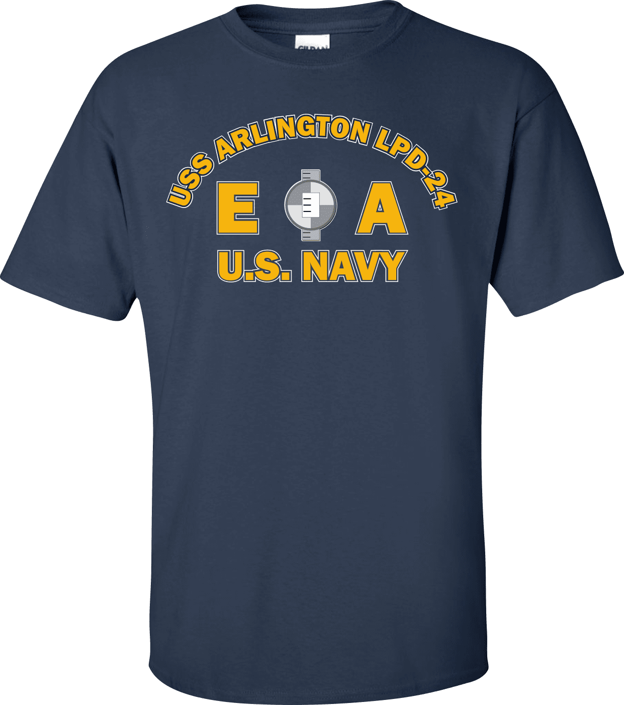 MilitaryBest is proud to offer this USS ARLINGTON LPD-24 Rate EA Engineering Aide T-Shirt. This shirt is available as a 100% cotton t-shirt or a 100% polyester men’s or women’s moisture wicking t-shirt. Each shirt is proudly printed in the USA.