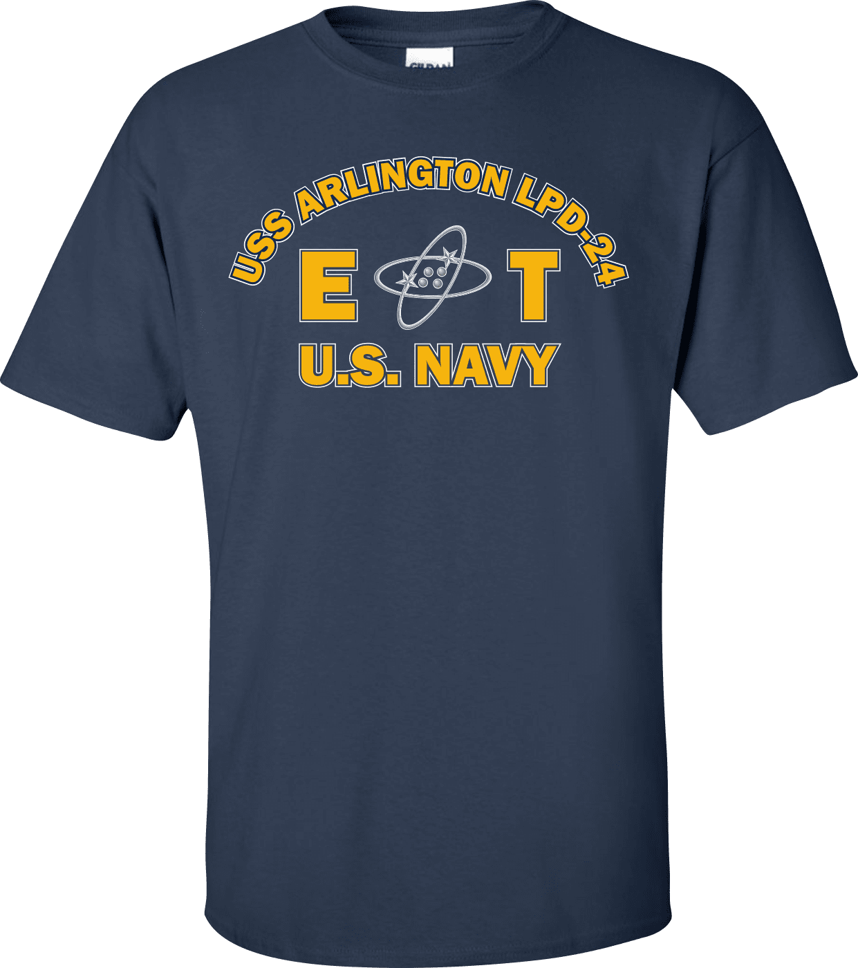 MilitaryBest is proud to offer this USS ARLINGTON LPD-24 Rate ET Electronics Technician T-Shirt. This shirt is available as a 100% cotton t-shirt or a 100% polyester men’s or women’s moisture wicking t-shirt. Each shirt is proudly printed in the USA.