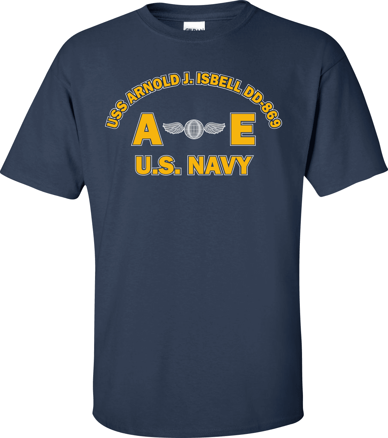 MilitaryBest is proud to offer this USS ARNOLD J. ISBELL DD-869 Rate AE Aviation Electricians Mate T-Shirt. This shirt is available as a 100% cotton t-shirt or a 100% polyester men’s or women’s moisture wicking t-shirt. Each shirt is proudly printed in the USA.