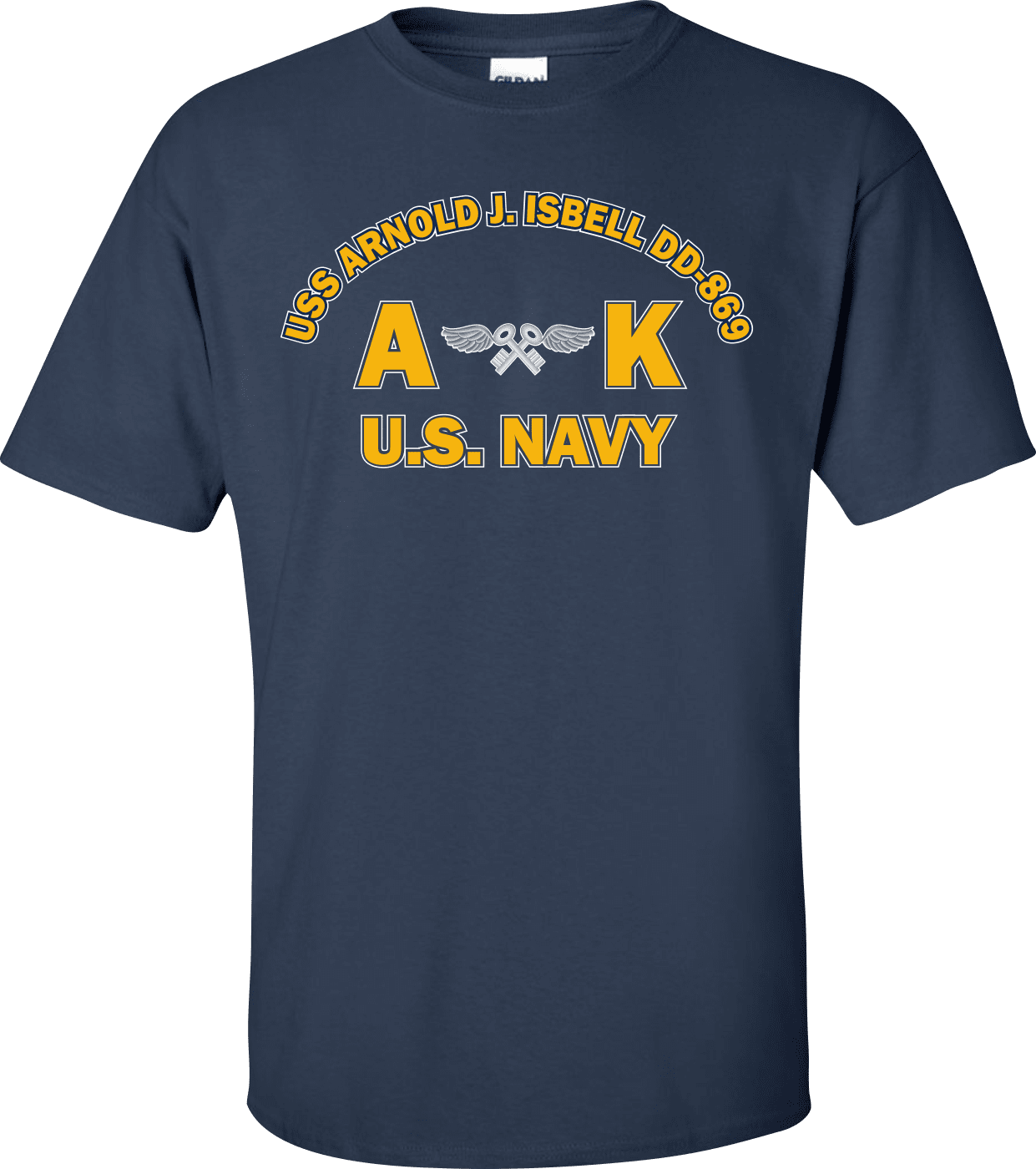 MilitaryBest is proud to offer this USS ARNOLD J. ISBELL DD-869 Rate AK Aviation Storekeeper T-Shirt. This shirt is available as a 100% cotton t-shirt or a 100% polyester men’s or women’s moisture wicking t-shirt. Each shirt is proudly printed in the USA.