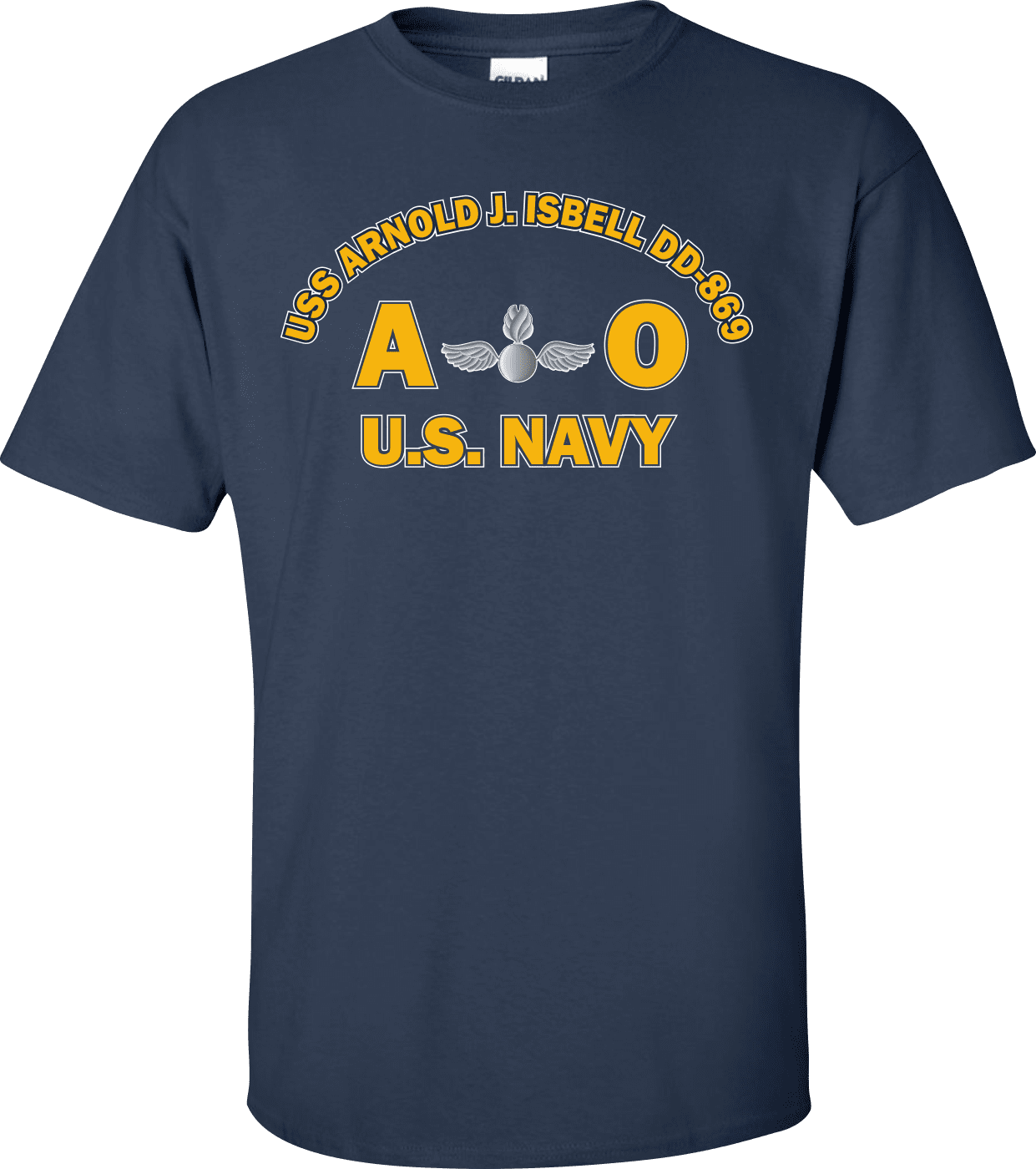 MilitaryBest is proud to offer this USS ARNOLD J. ISBELL DD-869 Rate AO Aviation Ordnanceman T-Shirt. This shirt is available as a 100% cotton t-shirt or a 100% polyester men’s or women’s moisture wicking t-shirt. Each shirt is proudly printed in the USA.