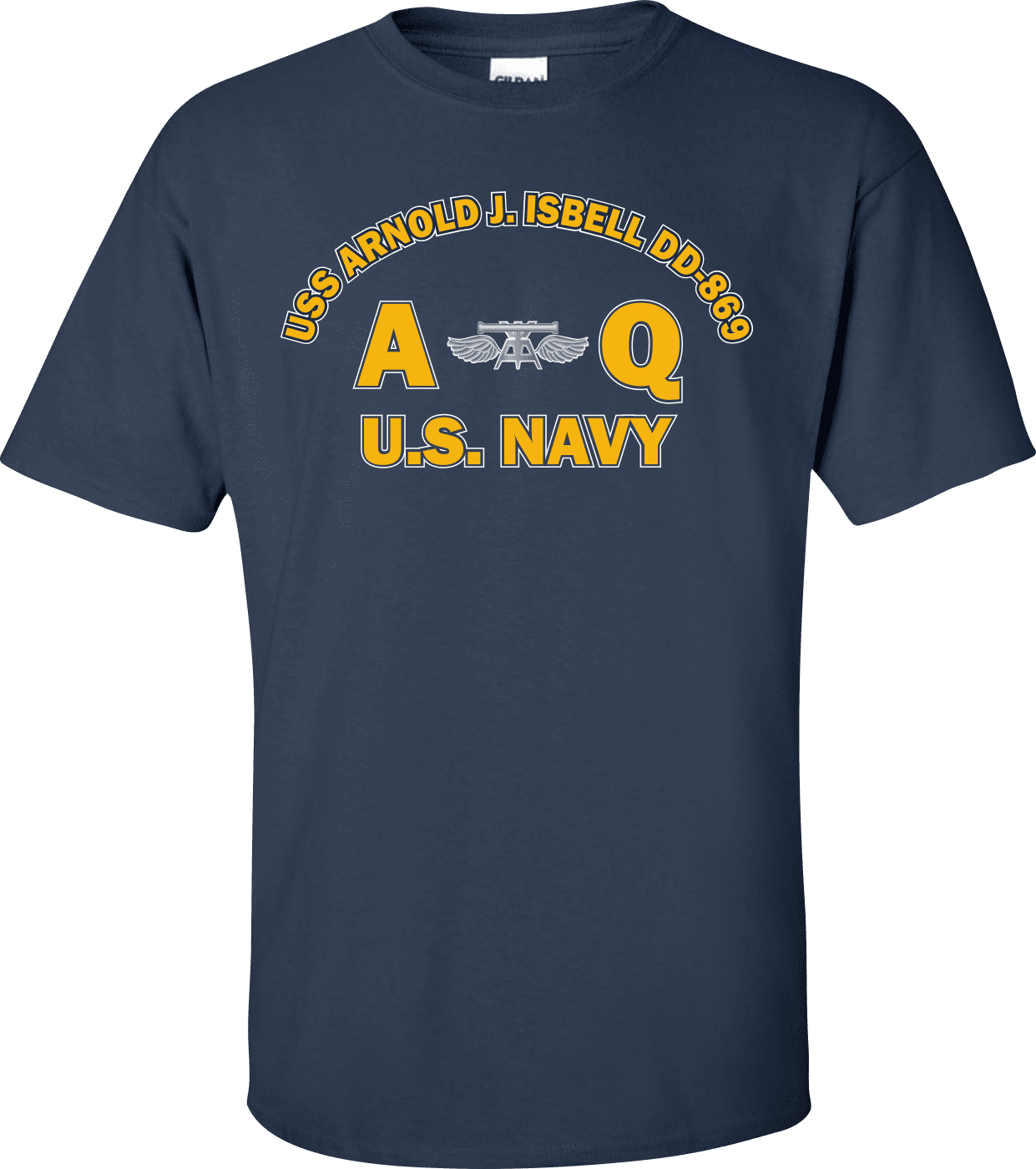 MilitaryBest is proud to offer this USS ARNOLD J. ISBELL DD-869 Rate AQ Aviation Fire Control Technician T-Shirt. This shirt is available as a 100% cotton t-shirt or a 100% polyester men’s or women’s moisture wicking t-shirt. Each shirt is proudly printed in the USA.