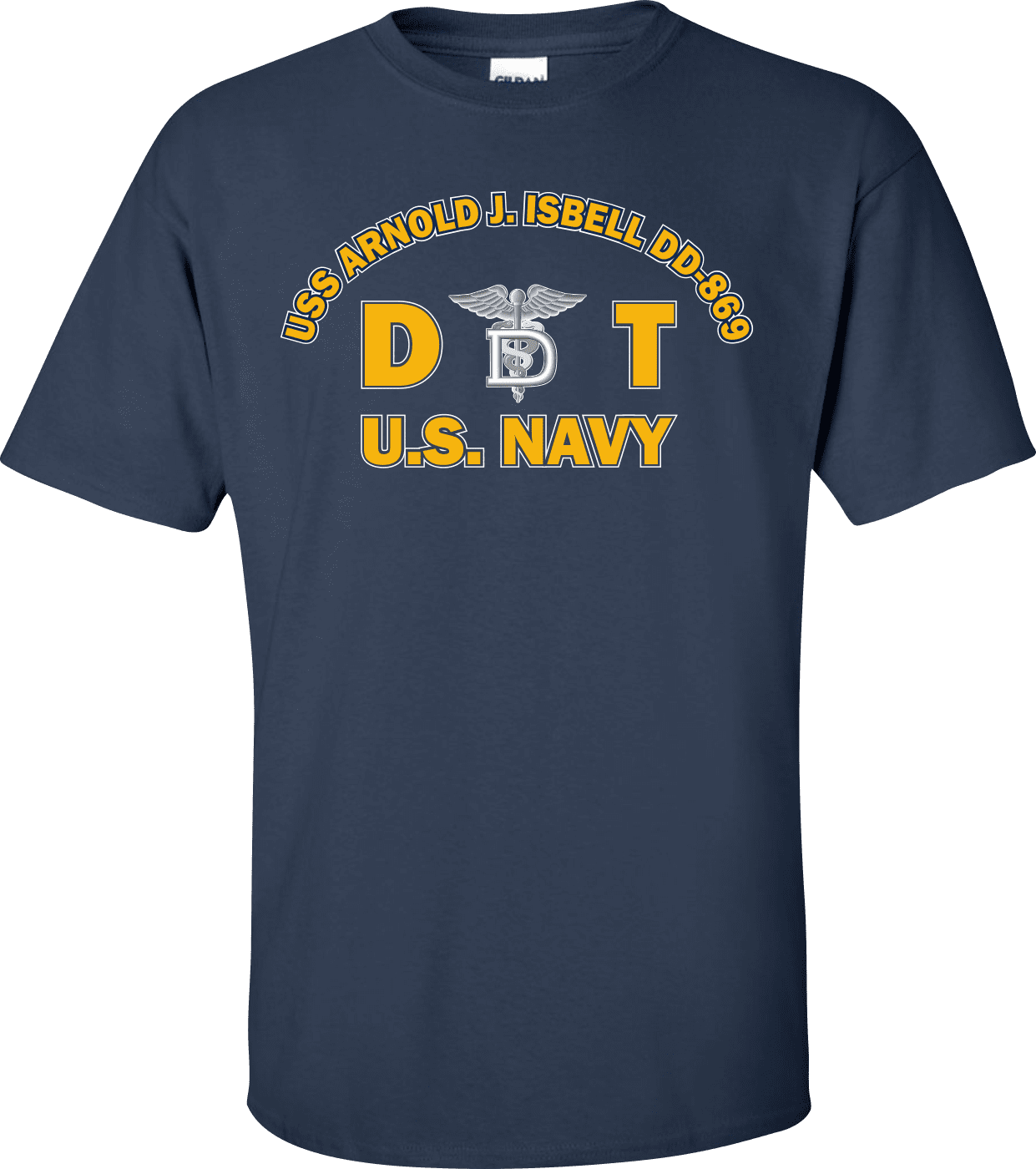 MilitaryBest is proud to offer this USS ARNOLD J. ISBELL DD-869 Rate DT Dental Technician T-Shirt. This shirt is available as a 100% cotton t-shirt or a 100% polyester men’s or women’s moisture wicking t-shirt. Each shirt is proudly printed in the USA.
