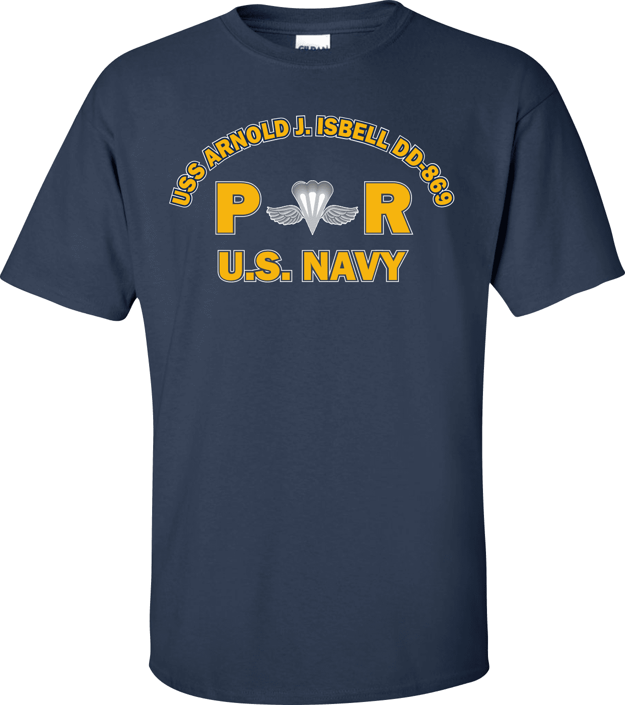 MilitaryBest is proud to offer this USS ARNOLD J. ISBELL DD-869 Rate PR Aircrew Survival Equipmentman T-Shirt. This shirt is available as a 100% cotton t-shirt or a 100% polyester men’s or women’s moisture wicking t-shirt. Each shirt is proudly printed in the USA.