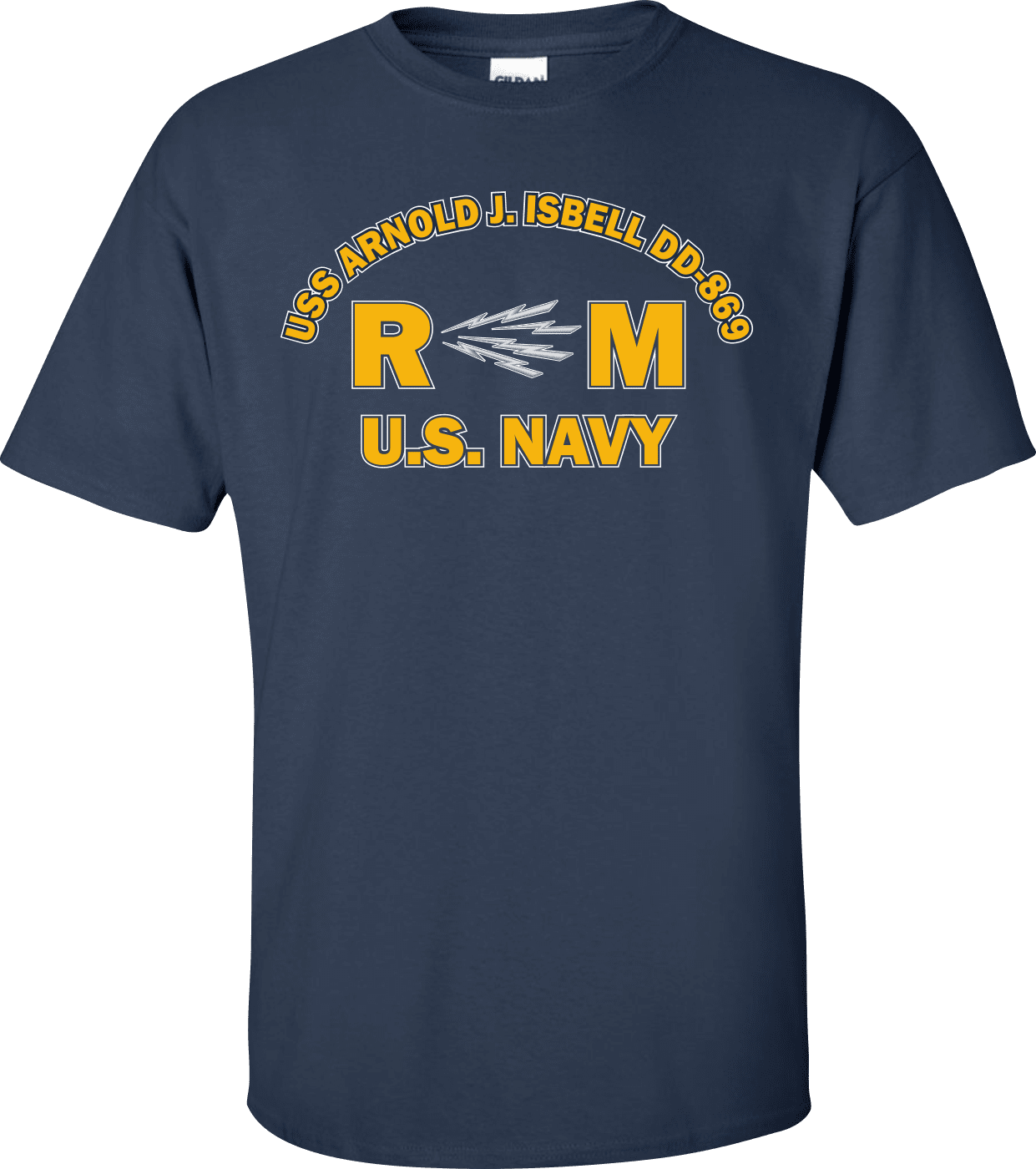 MilitaryBest is proud to offer this USS ARNOLD J. ISBELL DD-869 Rate RM Radioman T-Shirt. This shirt is available as a 100% cotton t-shirt or a 100% polyester men’s or women’s moisture wicking t-shirt. Each shirt is proudly printed in the USA.