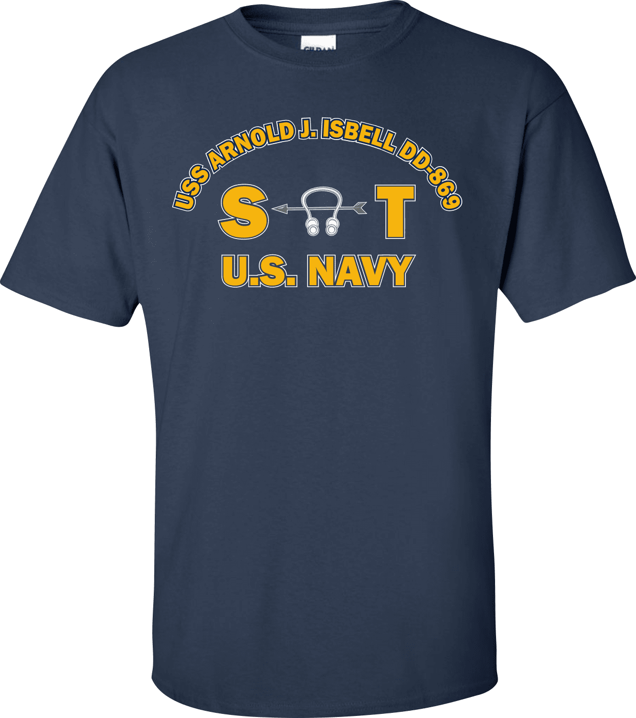 MilitaryBest is proud to offer this USS ARNOLD J. ISBELL DD-869 Rate ST Sonar Technician T-Shirt. This shirt is available as a 100% cotton t-shirt or a 100% polyester men’s or women’s moisture wicking t-shirt. Each shirt is proudly printed in the USA.