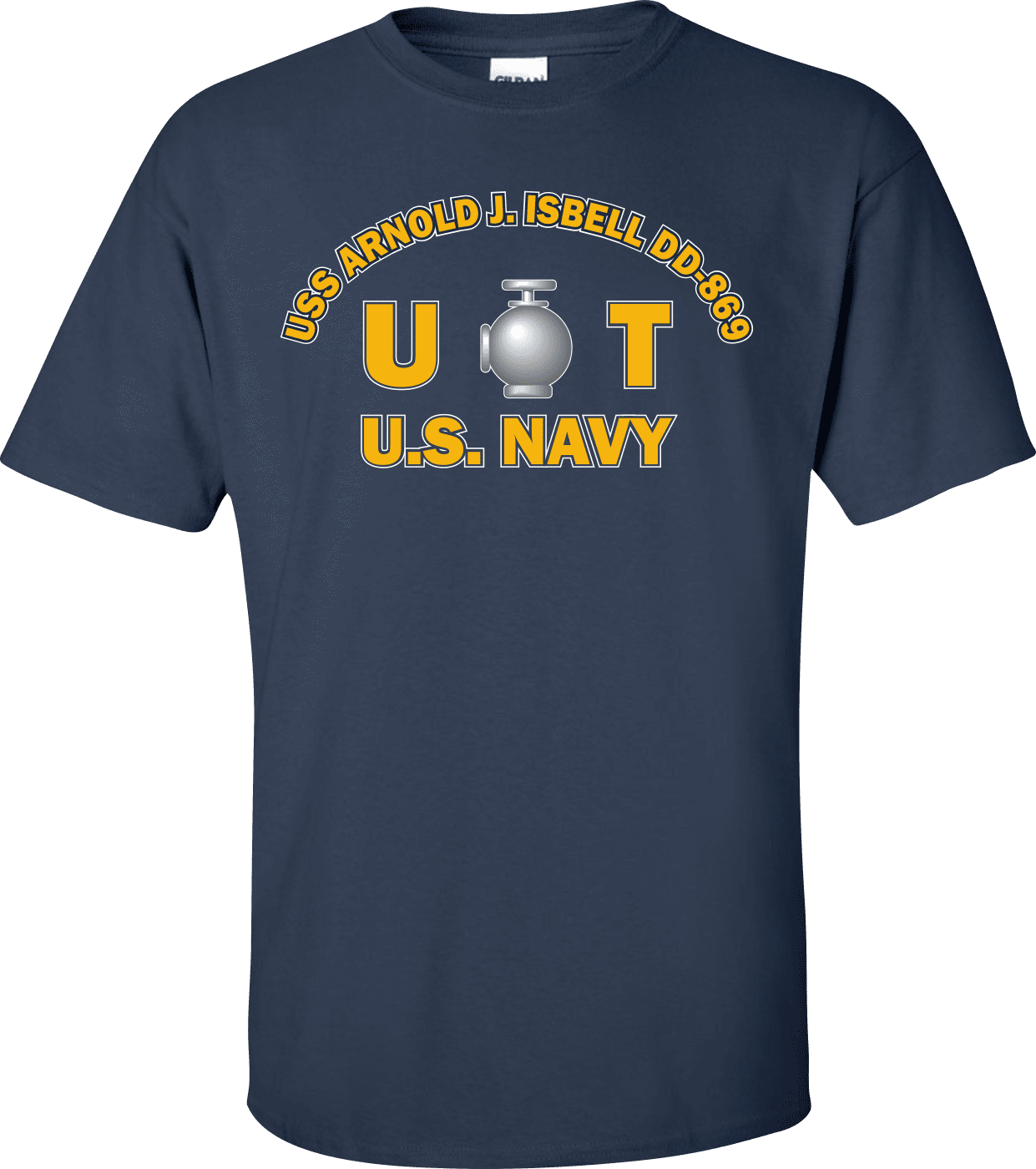 MilitaryBest is proud to offer this USS ARNOLD J. ISBELL DD-869 Rate UT Utilitiesman T-Shirt. This shirt is available as a 100% cotton t-shirt or a 100% polyester men’s or women’s moisture wicking t-shirt. Each shirt is proudly printed in the USA.