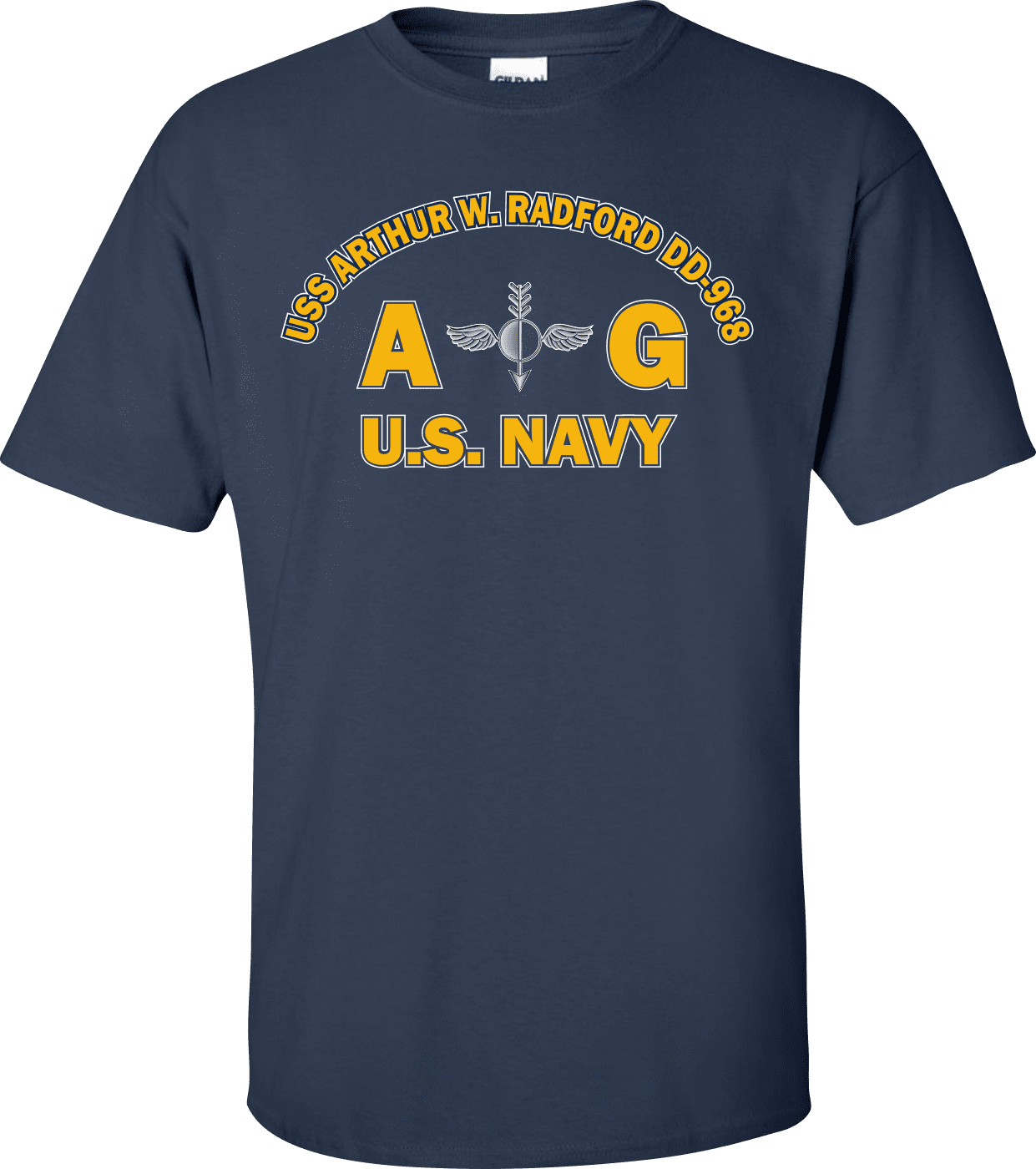 MilitaryBest is proud to offer this USS ARTHUR W. RADFORD DD-968 Rate AG Aerographers Mate T-Shirt. This shirt is available as a 100% cotton t-shirt or a 100% polyester men’s or women’s moisture wicking t-shirt. Each shirt is proudly printed in the USA.