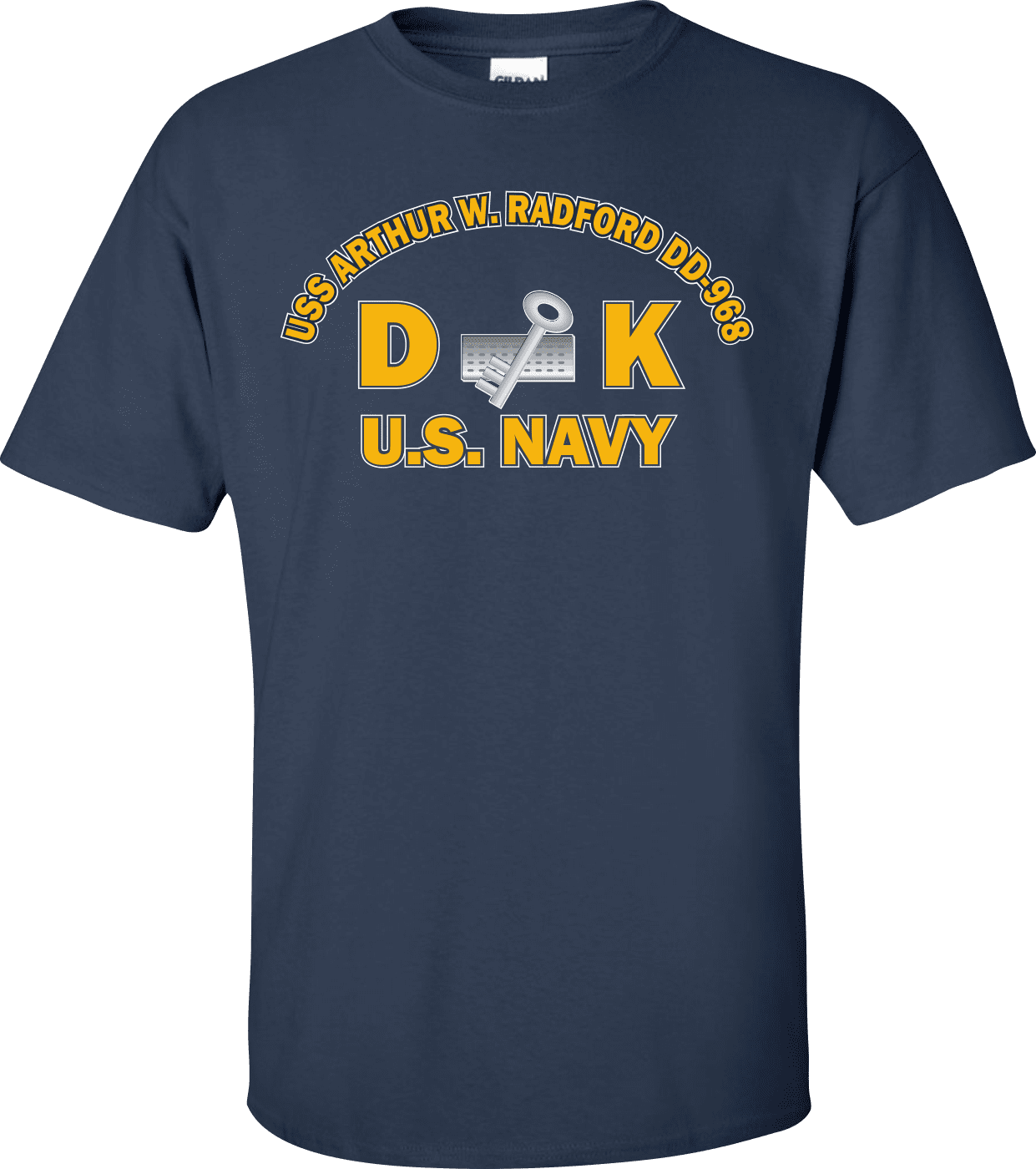 MilitaryBest is proud to offer this USS ARTHUR W. RADFORD DD-968 Rate DK Disbursing Clerk T-Shirt. This shirt is available as a 100% cotton t-shirt or a 100% polyester men’s or women’s moisture wicking t-shirt. Each shirt is proudly printed in the USA.