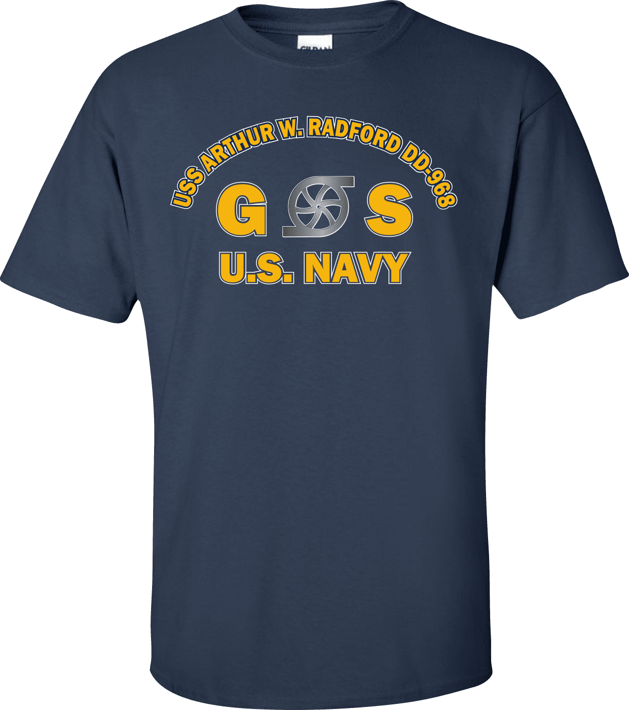 MilitaryBest is proud to offer this USS ARTHUR W. RADFORD DD-968 Rate GS Gas Turbine System Technician T-Shirt. This shirt is available as a 100% cotton t-shirt or a 100% polyester men’s or women’s moisture wicking t-shirt. Each shirt is proudly printed in the USA.