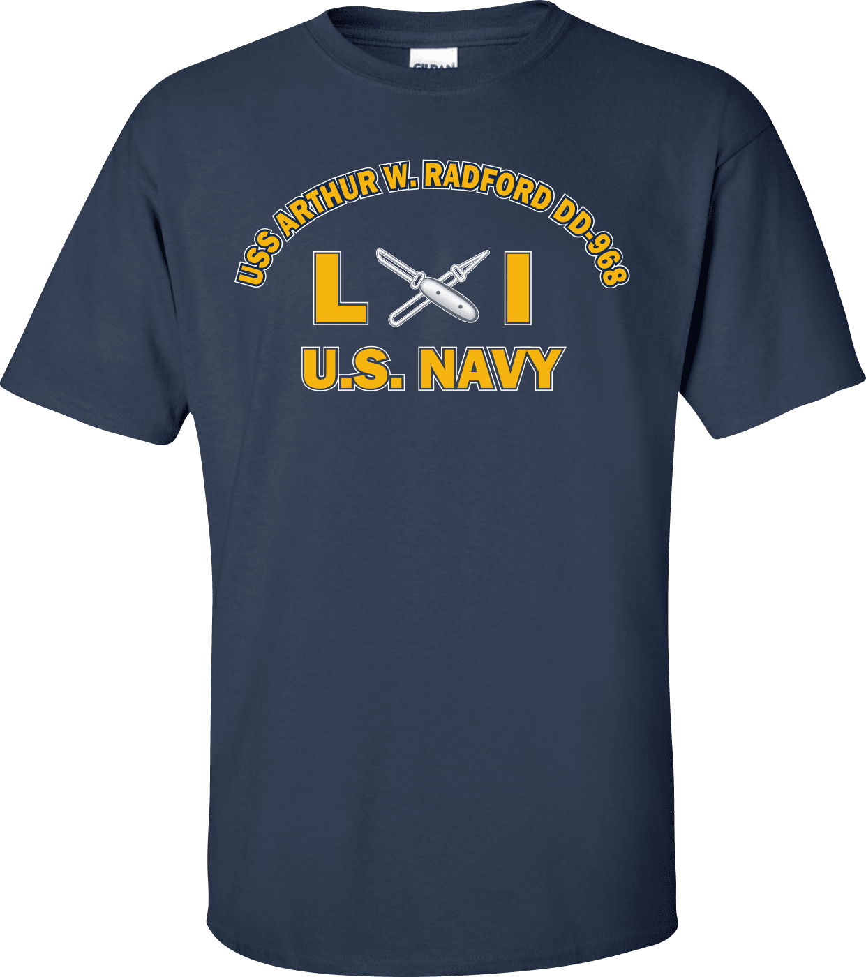 MilitaryBest is proud to offer this USS ARTHUR W. RADFORD DD-968 Rate LI Lithographer T-Shirt. This shirt is available as a 100% cotton t-shirt or a 100% polyester men’s or women’s moisture wicking t-shirt. Each shirt is proudly printed in the USA.