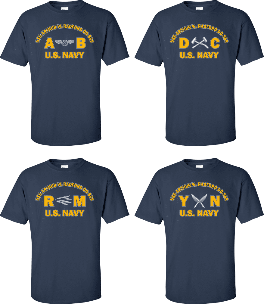 Due to disruptions in supply chains, this design will be embroidered on a Champion, Gildan, Jerzees or comparable brand.Proudly display your ship and rate with our top quality USS ARTHUR W. RADFORD DD-968 Rates t-shirts, sweatshirts, and hoodies. These fine U.S. Navy apparel items will make you the envy of your veteran buddies, or will make a fine gift! Our USS ARTHUR W. RADFORD DD-968 shirts are proudly printed in the USA!