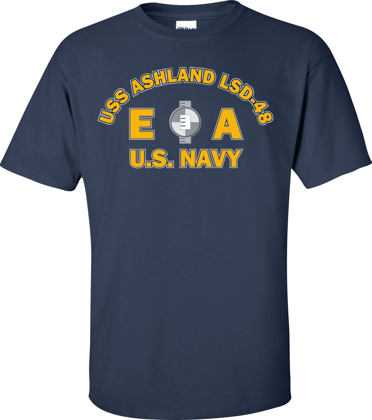 MilitaryBest is proud to offer this USS ASHLAND LSD-48 Rate EA Engineering Aide T-Shirt. This shirt is available as a 100% cotton t-shirt or a 100% polyester men’s or women’s moisture wicking t-shirt. Each shirt is proudly printed in the USA.