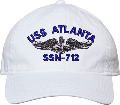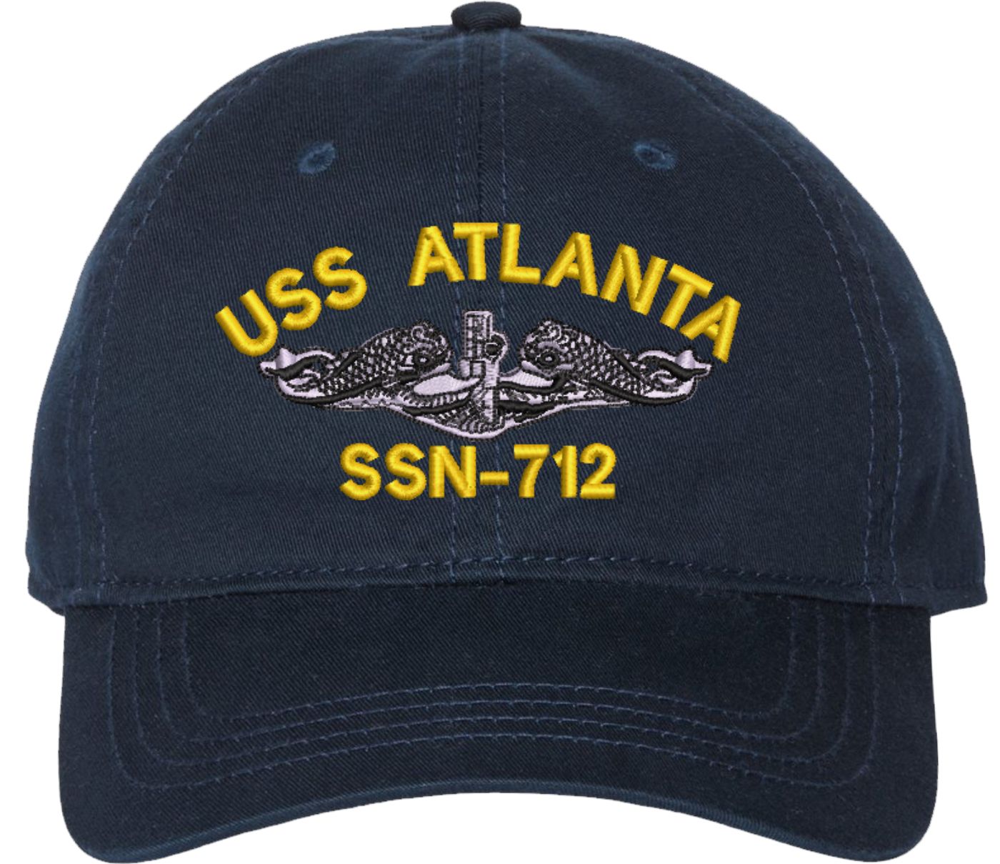 Show your Navy pride with this USS Atlanta SSN-712 with Dolphins Unstructured Dad Cap from MilitaryBest. Crafted from 100% washed chino twill cotton, this six-panel, low-profile cap offers a relaxed and comfortable fit. Featuring high-quality embroidery done in our Scottsboro, Alabama facility, this cap is designed with a pre-curved visor and an adjustable tri-glide buckle closure for a perfect fit. Whether for everyday wear or as a meaningful gift, this cap is a great way to honor your own or a loved one's service.For caps ordered with custom embroidered personalized text please allow an additional 3 to 5 days production time. All custom back text will be embroidered in ALL CAPITAL LETTERS. Caps with back text or eggs are non-returnable unless there is a material defect in the cap.