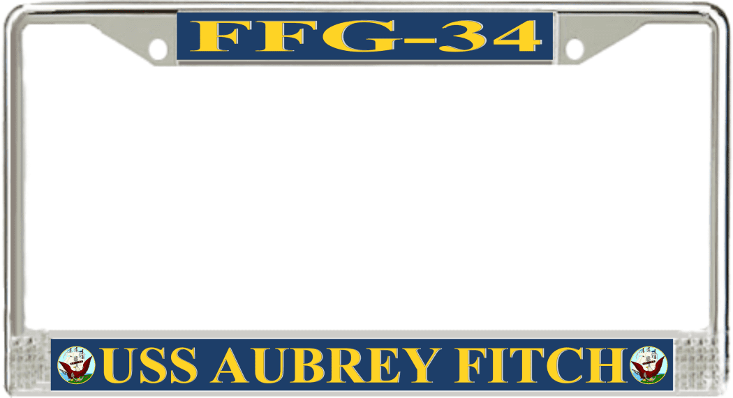 USS Aubrey Fitch FFG-34 License Plate FrameThis USS Aubrey Fitch FFG-34 License Plate Frame is proudly made in the USA at our facilities in Scottsboro, Alabama. Each of our MilitaryBest U.S. Navy Frames feature top and bottom Poly Coated Aluminum strips that are printed using sublimation which gives these quality automobile military frames a beautiful high gloss finish.