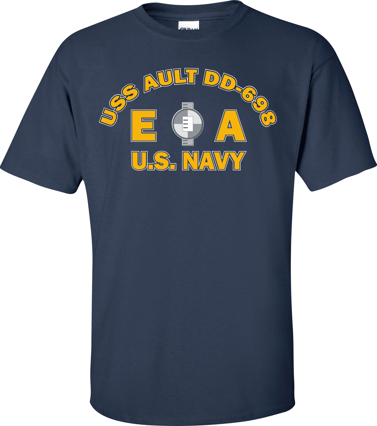MilitaryBest is proud to offer this USS AULT DD-698 Rate EA Engineering Aide T-Shirt. This shirt is available as a 100% cotton t-shirt or a 100% polyester men’s or women’s moisture wicking t-shirt. Each shirt is proudly printed in the USA.