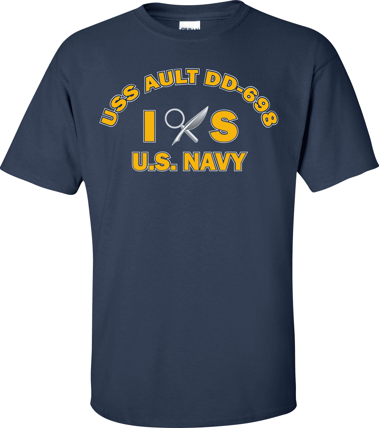 MilitaryBest is proud to offer this USS AULT DD-698 Rate IS Intelligence Specialist T-Shirt. This shirt is available as a 100% cotton t-shirt or a 100% polyester men’s or women’s moisture wicking t-shirt. Each shirt is proudly printed in the USA.