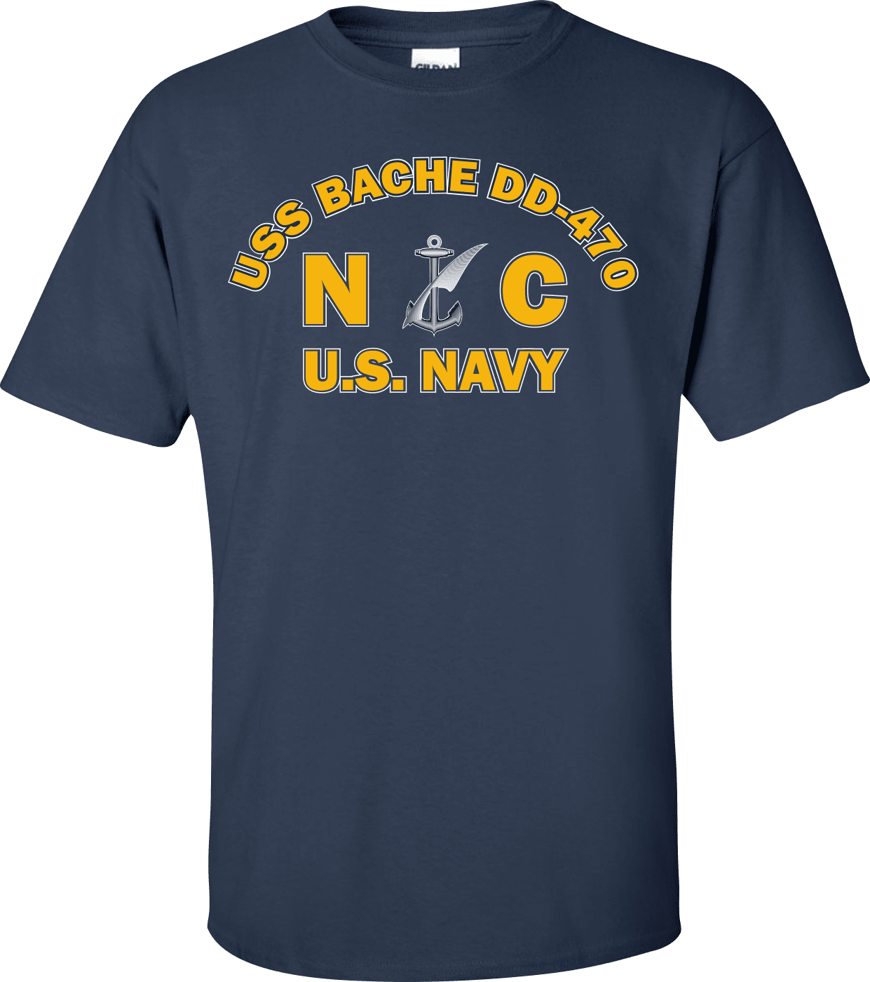 MilitaryBest is proud to offer this USS BACHE DD-470 Rate NC Counselor T-Shirt. This shirt is available as a 100% cotton t-shirt or a 100% polyester men’s or women’s moisture wicking t-shirt. Each shirt is proudly printed in the USA.