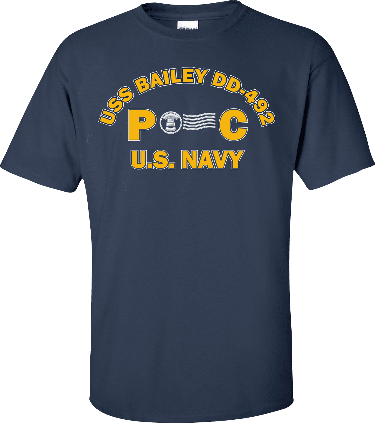 MilitaryBest is proud to offer this USS BAILEY DD-492 Rate PC Postal Clerk T-Shirt. This shirt is available as a 100% cotton t-shirt or a 100% polyester men’s or women’s moisture wicking t-shirt. Each shirt is proudly printed in the USA.