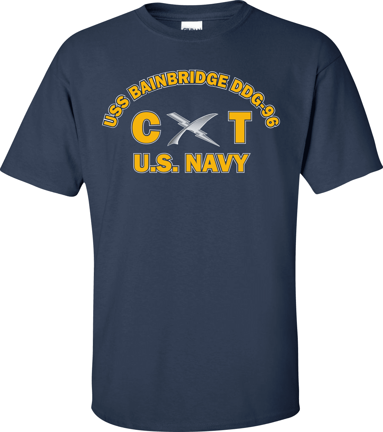 MilitaryBest is proud to offer this USS BAINBRIDGE DDG-96 Rate CT Cryptologic Technician T-Shirt. This shirt is available as a 100% cotton t-shirt or a 100% polyester men’s or women’s moisture wicking t-shirt. Each shirt is proudly printed in the USA.