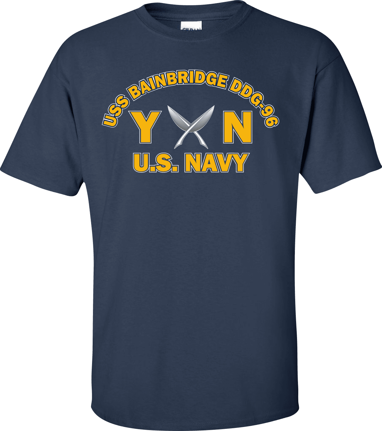 MilitaryBest is proud to offer this USS BAINBRIDGE DDG-96 Rate YN Yeoman T-Shirt. This shirt is available as a 100% cotton t-shirt or a 100% polyester men’s or women’s moisture wicking t-shirt. Each shirt is proudly printed in the USA.