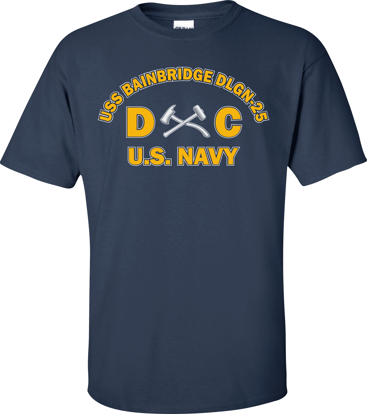 MilitaryBest is proud to offer this USS BAINBRIDGE DLGN-25 Rate DC Damage Controlman T-Shirt. This shirt is available as a 100% cotton t-shirt or a 100% polyester men’s or women’s moisture wicking t-shirt. Each shirt is proudly printed in the USA.