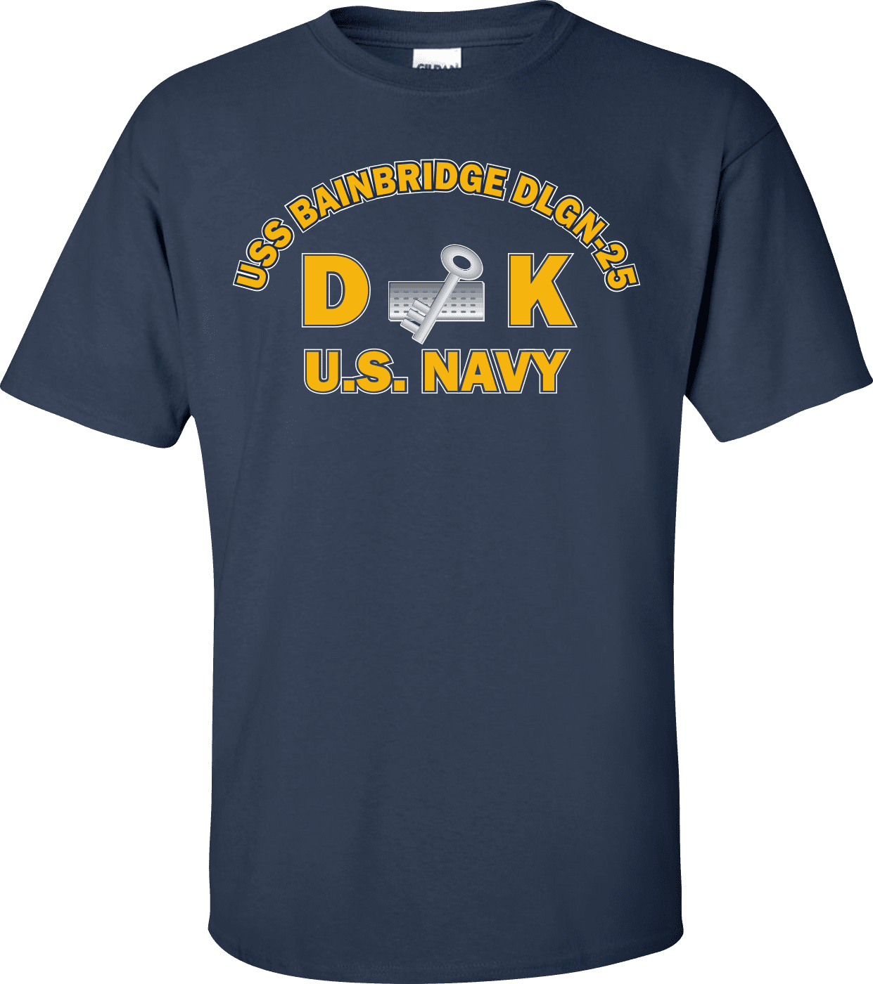 MilitaryBest is proud to offer this USS BAINBRIDGE DLGN-25 Rate DK Disbursing Clerk T-Shirt. This shirt is available as a 100% cotton t-shirt or a 100% polyester men’s or women’s moisture wicking t-shirt. Each shirt is proudly printed in the USA.