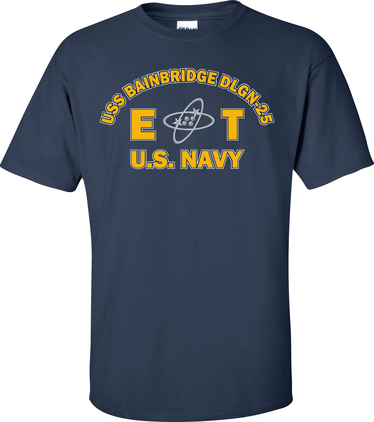 MilitaryBest is proud to offer this USS BAINBRIDGE DLGN-25 Rate ET Electronics Technician T-Shirt. This shirt is available as a 100% cotton t-shirt or a 100% polyester men’s or women’s moisture wicking t-shirt. Each shirt is proudly printed in the USA.