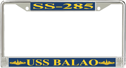 USS Balao SS-285 License Plate Frame This USS Balao SS-285 License Plate Frame is proudly made in the USA at our facilities in Scottsboro, Alabama. Each Frame features top and bottom sublimated design strips that are poly coated for a protective gloss finish. Please check your state and local regulations for compatibility of these frames for use on your vehicle.