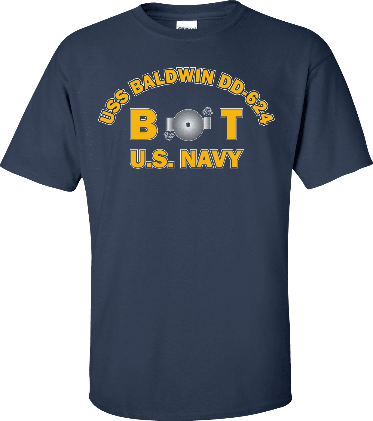 MilitaryBest is proud to offer this USS BALDWIN DD-624 Rate BT Boiler Technician T-Shirt. This shirt is available as a 100% cotton t-shirt or a 100% polyester men’s or women’s moisture wicking t-shirt. Each shirt is proudly printed in the USA.