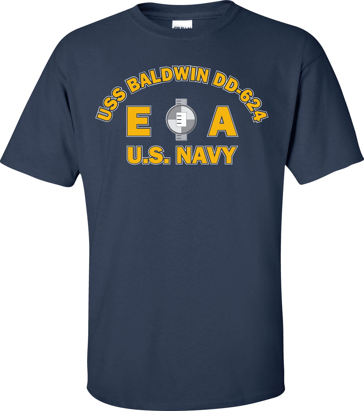 MilitaryBest is proud to offer this USS BALDWIN DD-624 Rate EA Engineering Aide T-Shirt. This shirt is available as a 100% cotton t-shirt or a 100% polyester men’s or women’s moisture wicking t-shirt. Each shirt is proudly printed in the USA.