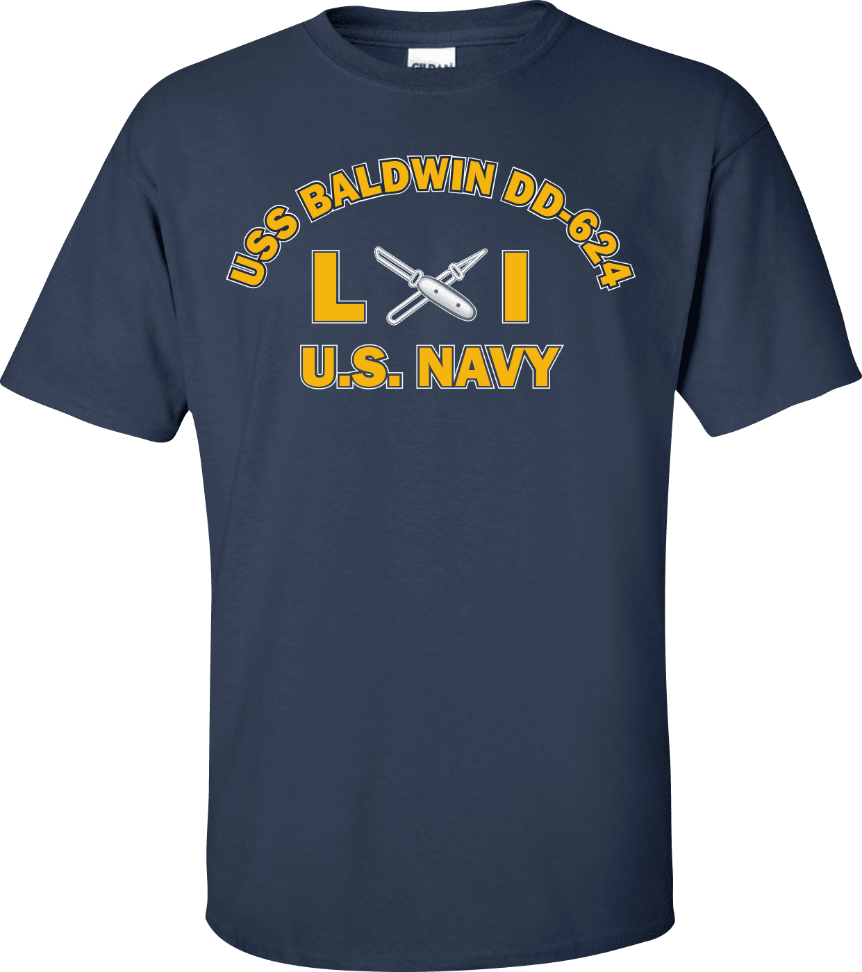 MilitaryBest is proud to offer this USS BALDWIN DD-624 Rate LI Lithographer T-Shirt. This shirt is available as a 100% cotton t-shirt or a 100% polyester men’s or women’s moisture wicking t-shirt. Each shirt is proudly printed in the USA.